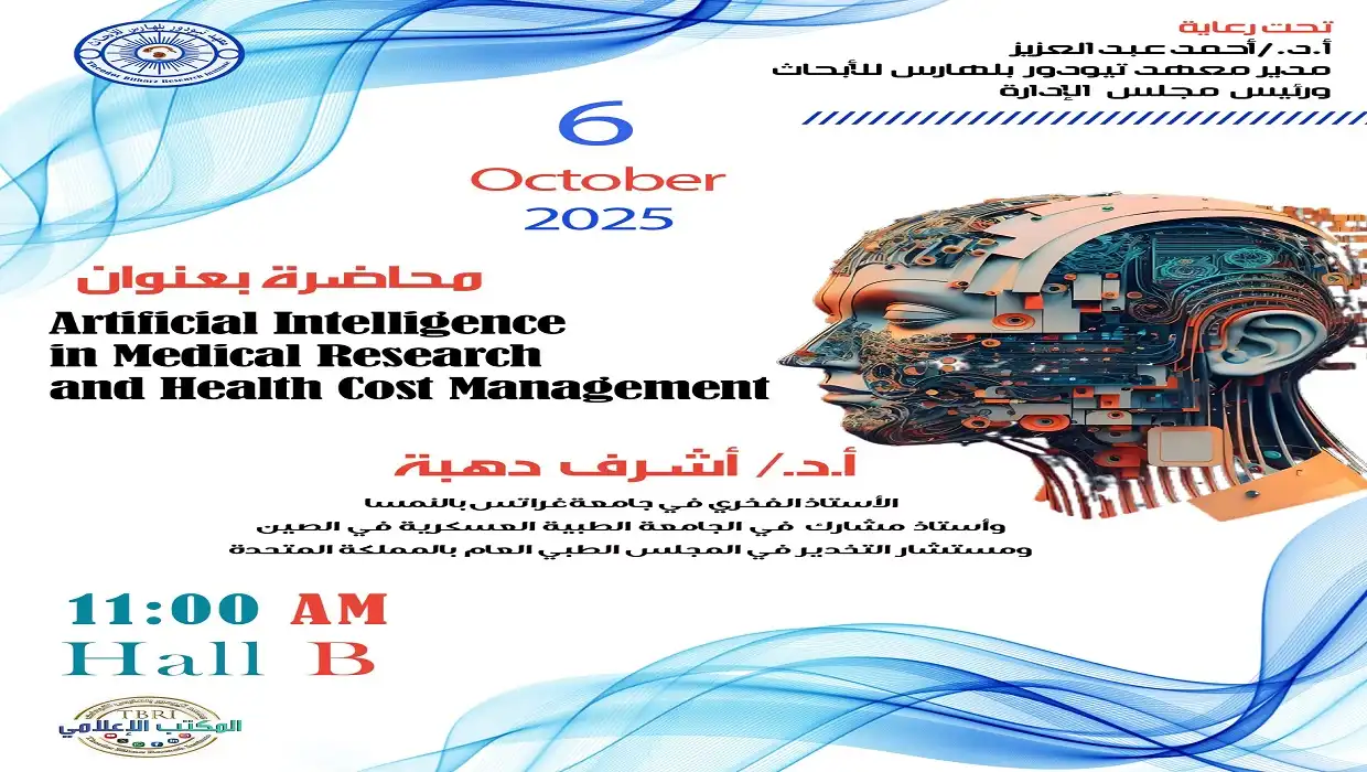 Under the patronage of Prof. Dr. Ahmed Abdel Aziz, Director of the Theodore Bilharz Research Institute and Chairman of the Board, Prof. Dr. Ashraf Dahaba, Professor Emeritus at the University of Graz in Austria, Associate Professor at the Military Medical University in China, and Anesthesia Consultant at the General Medical Council in the United Kingdom, will deliver a lecture entitled:
